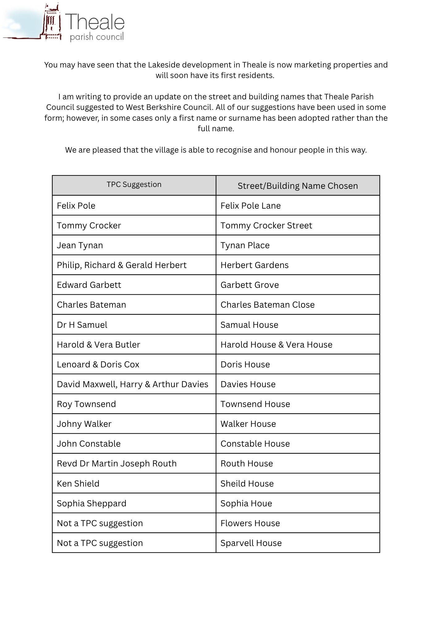 Thank you to everyone who contributed their suggestions. Your input helps ensure our local area reflects the character and history of the community.